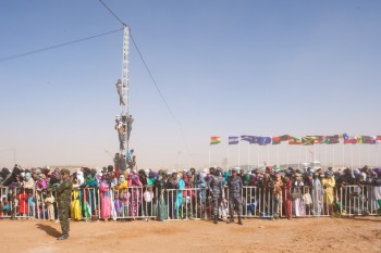 Ce peuple oublié voit depuis 40 ans sa population coupée en deux. D'un côté, les Sahraouis vivant sous l'occupation marocaine, de l'autre plus de 150 000 réfugiés subissant l'exil en survivant dans les territoires libres et dans les campements de la région de Tindouf en Algérie. Séparés par le mur le plus long du monde après la muraille de Chine (2700 km)